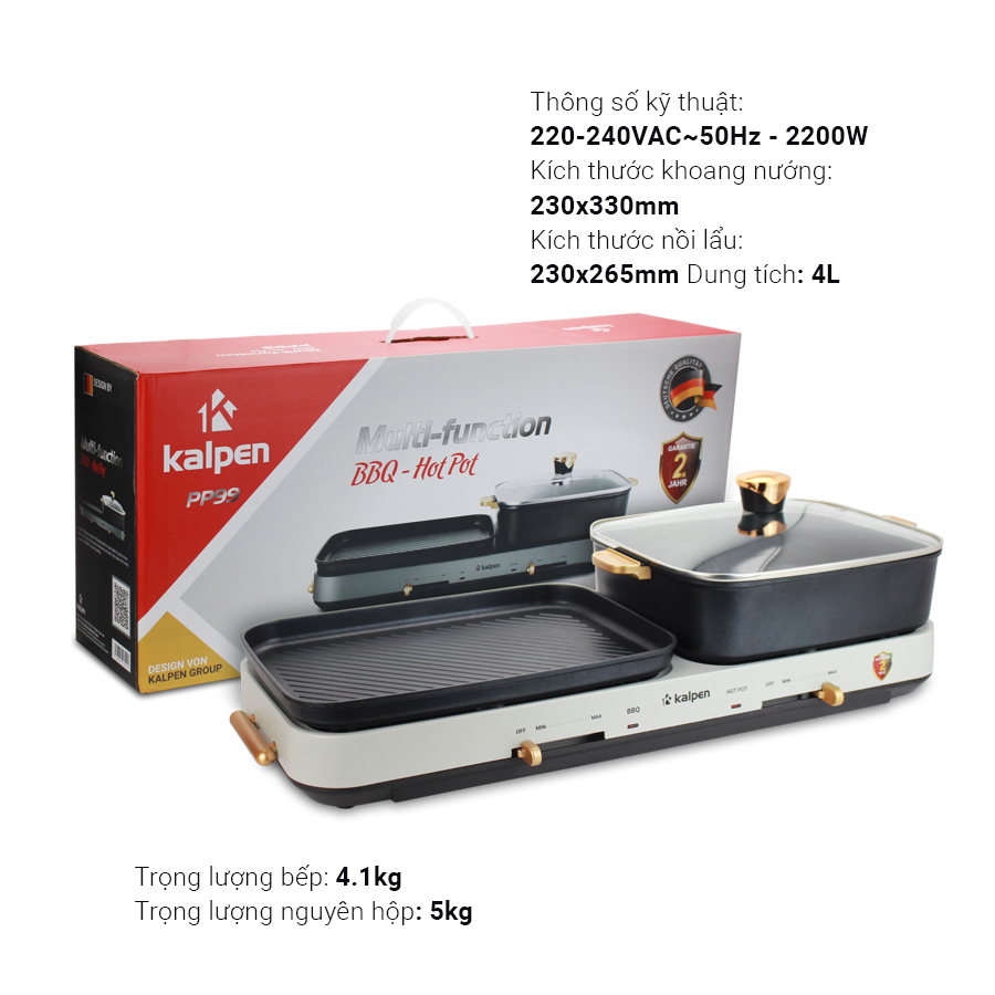 Bếp Nướng Lẩu Đa Năng Kalpen PP99 Công Suất 2200W