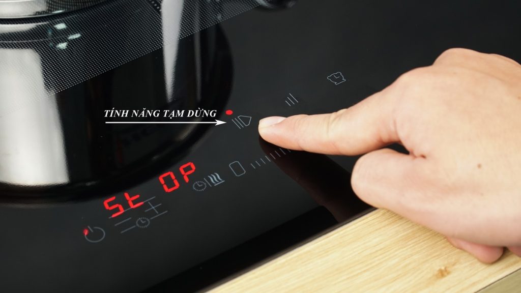 Kích hoạt tính năng này bếp sẽ tạm dừng trong khoảng 10 phút. Tính năng này cực tiện lợi và phù hợp để bạn có thể xử lý các việc phát sinh như trả lời điện thoại, mở cửa, nhận hàng…